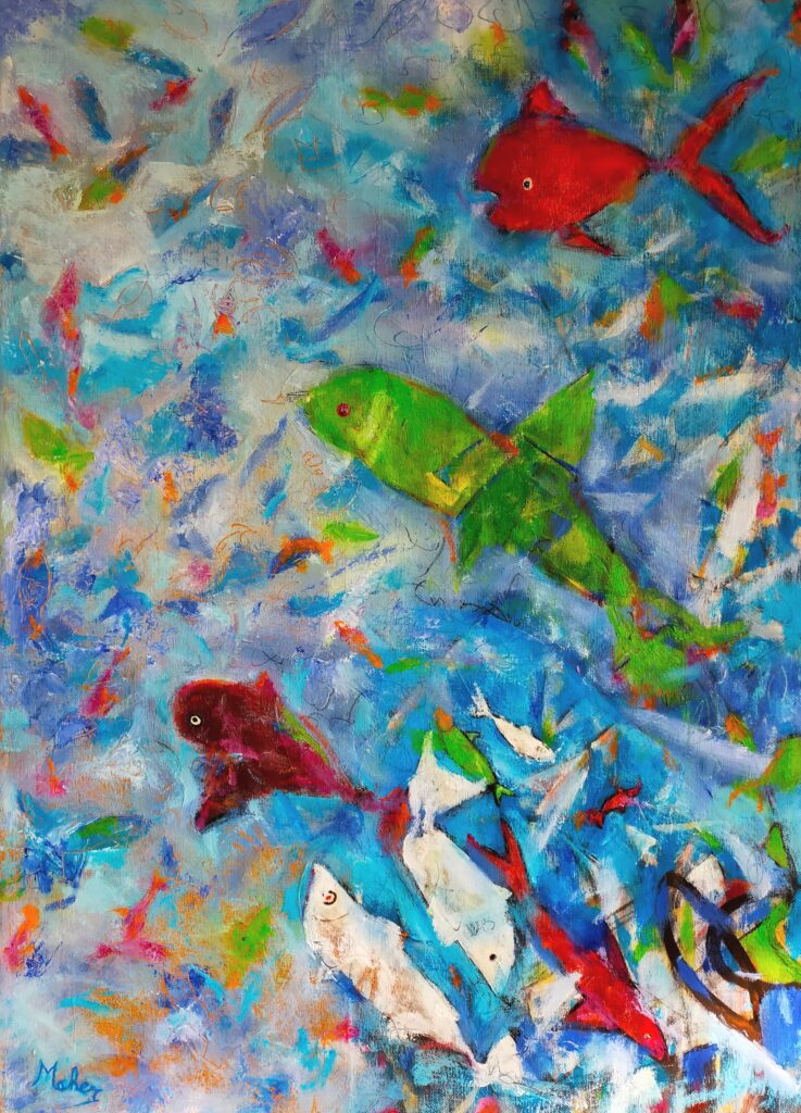 Vis 50×70 acryl op doek 500 €