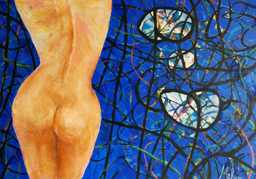 De billen 70×50 acryl op doek 1000 €